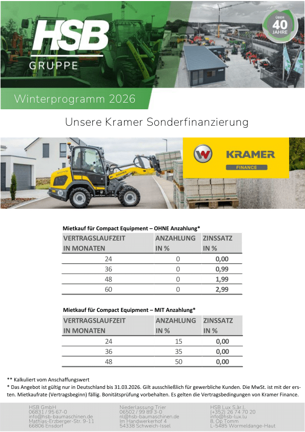 Wir sind die HSB Gruppe – Ihr starker Partner für Baumaschinen und Baugeräte in der Region!