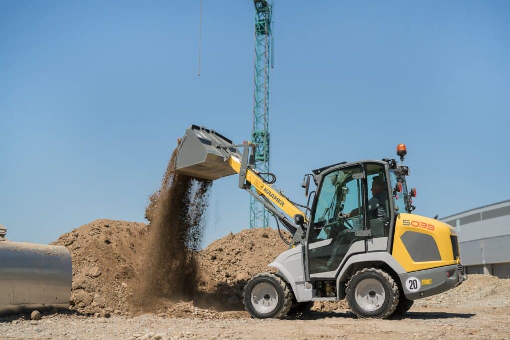 Der Kramer 5035 aus der Kompaktklasse vereint Agilität, Leistung und kompakte Bauweise. Durch sein optimiertes Leistungsgewicht, die hohe Nutzlast und das geringe Transportgewicht ist er ideal für enge Baustellen und vielfältige Einsätze im Bau- und GaLaBau geeignet. Dank seiner schlanken Maße lässt er sich sogar auf Gehwegen bewegen und unkompliziert per Pkw-Anhänger transportieren.