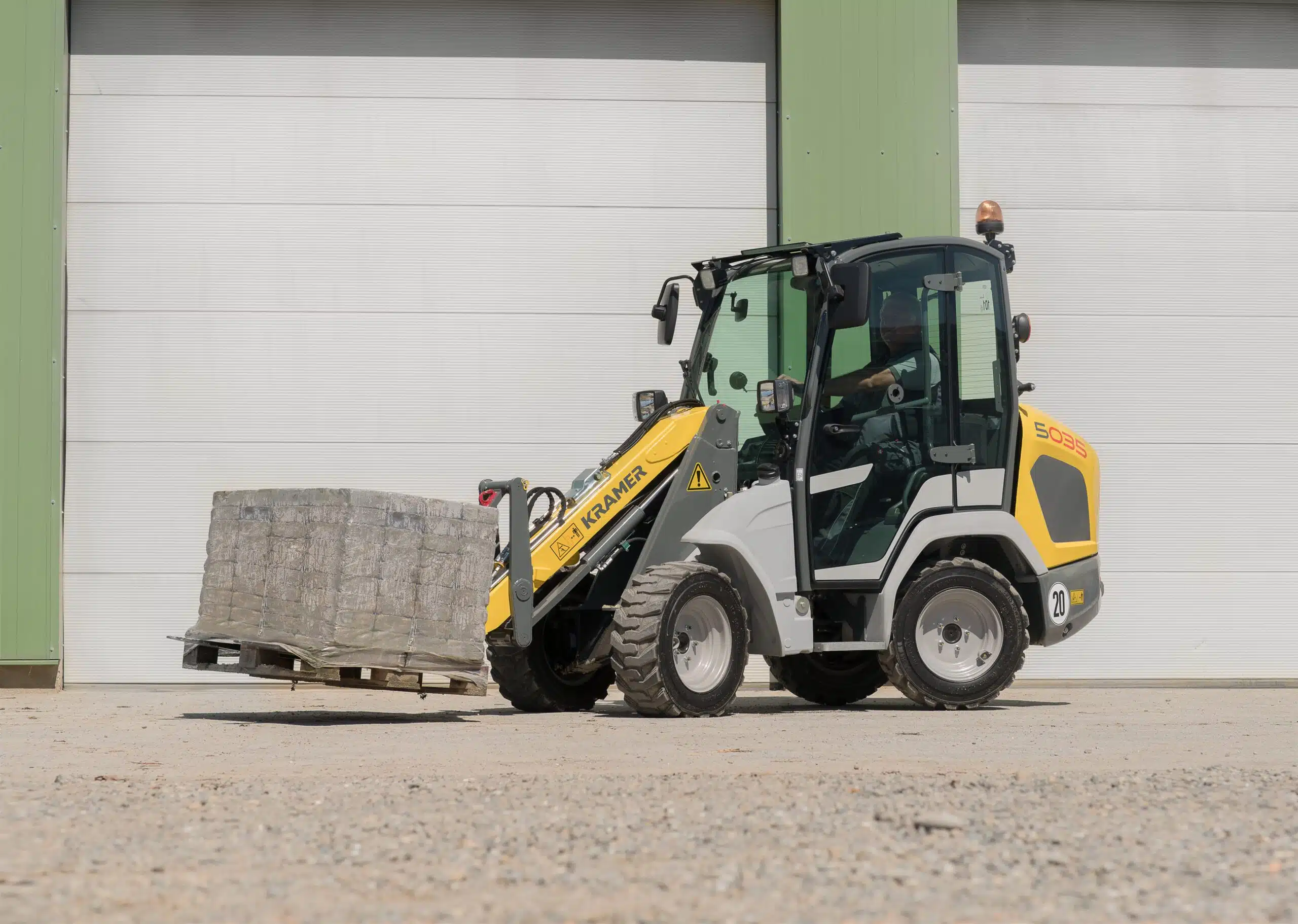Der Kramer 5035 aus der Kompaktklasse vereint Agilität, Leistung und kompakte Bauweise. Durch sein optimiertes Leistungsgewicht, die hohe Nutzlast und das geringe Transportgewicht ist er ideal für enge Baustellen und vielfältige Einsätze im Bau- und GaLaBau geeignet. Dank seiner schlanken Maße lässt er sich sogar auf Gehwegen bewegen und unkompliziert per Pkw-Anhänger transportieren.