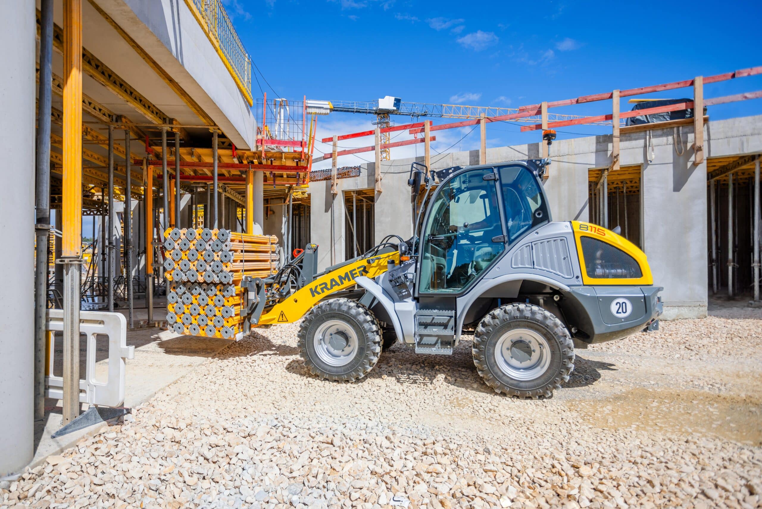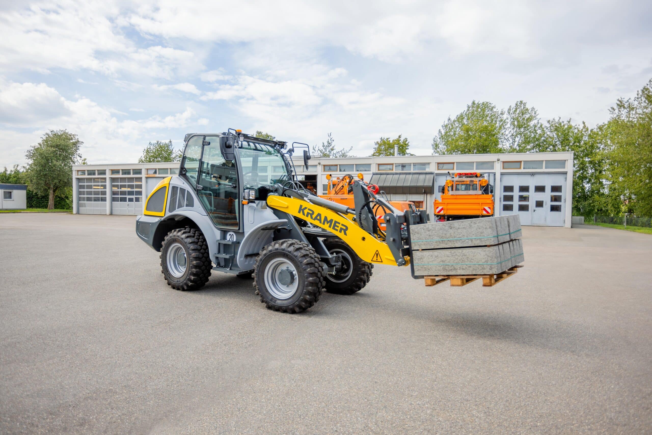 Der Kramer Radlader 8115 gehört zum Premiumsegment der 8er-Serie und ist mit dem erprobten Prinzip des ungeteilten Rahmens ausgestattet. Das optional erhältliche ecospeed Getriebe und die große Bereifung ermöglichen vielfältige Einsätze mit dieser Maschine.