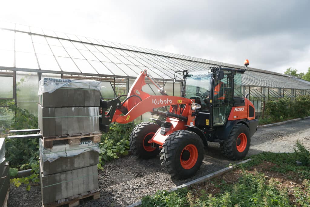 Der Stage V R090 ist ein echtes Kraftpaket mit der Fähigkeit, schwere Lasten problemlos zu handhaben, entweder mit einer Standard- oder einer extrabreiten Schaufel oder einer Palettengabel.