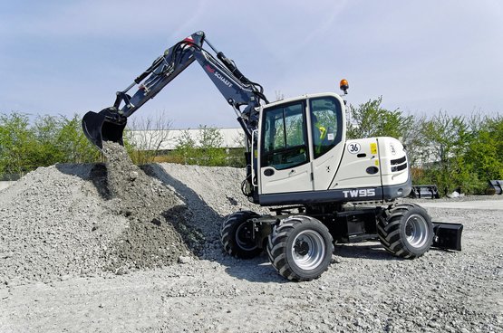 Der TW95 bewältigt Arbeiten, die normalerweise viel schwereren Maschinen vorbehalten sind. So kann der 9-Tonnen-Mobilbagger dank seiner hohen Tragfähigkeit und seines präzisen Hydrauliksystems schwere Lasten transportieren und präzise positionieren. Er eignet sich damit hervorragend zum Bewegen von Materialien sowie für den Straßen- und Galabau. Hier leistet besonders die Greifschaufel zum Beladen von Lkw erstklassige Dienste.
