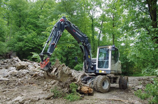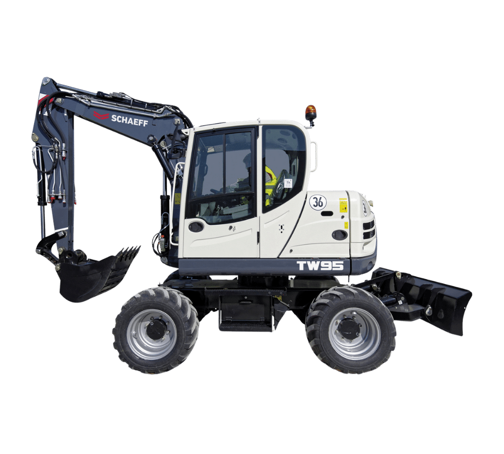Der Schaeff Mobilbagger TW95 ist komfortabel, leistungsstark und effizient. Ein echter Teampartner, den sich ein Fahrer auf der Baustelle wünscht – vom Galabau bis zum Hoch- und Tiefbau. Die Hubkräfte bei der Materiallogistik machen die Maschine besonders interessant für den Straßenbau. Oder wenn Äste und Stämme gezielt mit dem Greifer angepackt und geladen werden müssen.
